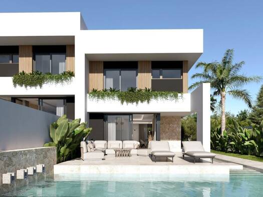 NEU GEBAUTE DOPPELHAUSHÄLFTEN IN LA ZENIA Neubau von unabhängigen Villen und Doppelhaushälften in La Zenia, Orihuela Costa. Moderne Eigenschaften bauen über 3 Etagen, verfügt über 3 Schlafzimmer, 2 B...