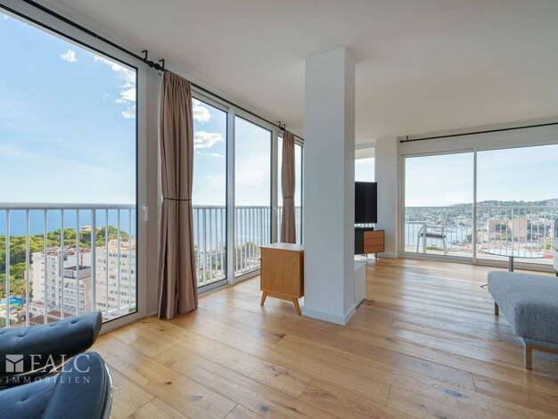 Willkommen in einem der begehrtesten Apartments auf Mallorca! Dieses luxurio?se Penthouse in unmittelbarer Na?he des Ko?nigspalastes Marivent in Cala Major vereint atemberaubendes Design, erstklassig...