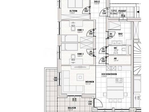 Die Wohnung Top C befindet sich im ersten Stock und hat eine Wohnfläche von 67,93 m². Sie besteht aus einem Eingangsbereich, einem Schlafzimmer, einem Kinderzimmer, einem Bad/WC und einem Wohnzimmer ...