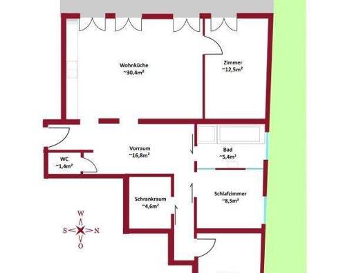 Objektnummer: 4303 Diese wunderschön gepflegte Wohnung befindet sich im Gartenbereich eines um 1900 erbauten Hauses und verfügt über einen separaten Eingang. Mit einer Wohnfläche von 57 m² umfasst di...