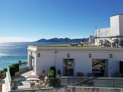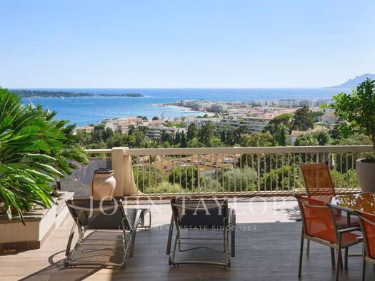 Face à la mer, ce somptueux appartement de 104 m² bénéficie d'une grande terrasse ensoleillée de 46 m² offrant une vue exceptionnelle sur la mer et les îles de Lérins. L'appartement a fait l'objet d'...