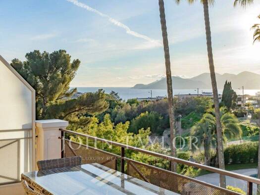 Duplex apartment overlooking the bay of Cannes located in a prestigious residence with swimming pool, gym, caretaker, park, on foot to sandy beaches, restaurants and the port, five minutes from the v...