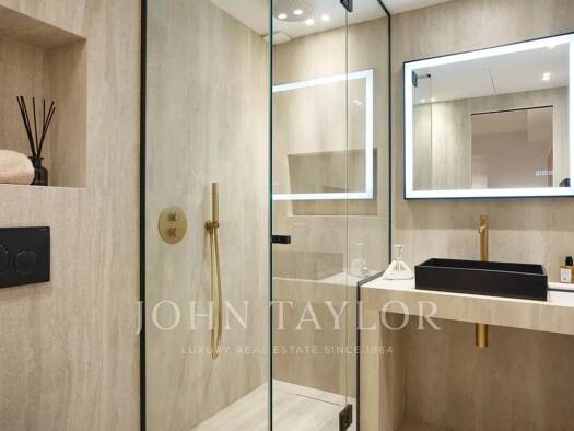 Die Residenz bietet eine 120 m² große Wohnfläche und verfügt über eine 70 m² Terrasse mit triple Exposition im 8. Stock des Gebäudes. Sie umfasst zwei en-suite Schlafzimmer mit sehr großzügigen Grund...