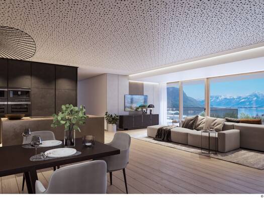 Diese außergewöhnliche Terrassenwohnung im exklusiven Neubauprojekt in St. Gilgen vereint alpine Eleganz mit modernem Wohnkomfort und einer atemberaubenden Aussicht auf den Wolfgangsee und die umlieg...