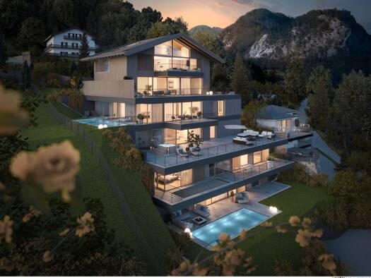 Exklusiv Wohnen mit traumhaftem Ausblick! In exklusiver, werthaltiger Hanglage über dem Mondsee entstehen in einer Villa drei hochwertige Wohneinheiten mit einem grandiosen See- und Fernblick. Das Pr...