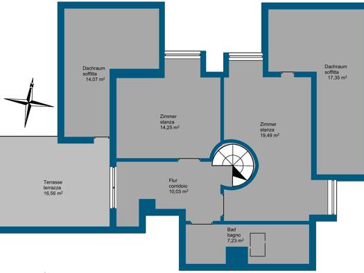 Zweizimmerwohnung mit traumhafter Terrasse - Verkauf des nackten Eigentums Zum Verkauf steht das nackte Eigentum einer großzügigen Zweizimmerwohnung in einer der gefragtesten Wohnlagen von Meran: Obe...