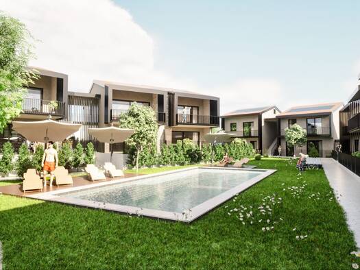 Objektbeschreibung In einer eleganten Wohnanlage mit gemeinschaftlichem Schwimmbad, bieten wir eine Wohnung im Erdgeschoss mit privatem Garten. Raumaufteilung Die Immobilie erstreckt sich über zwei E...