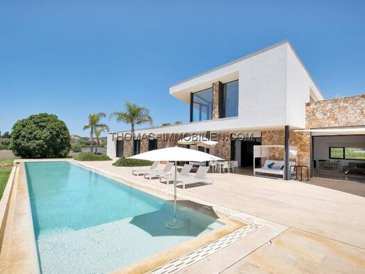 Moderne Finca Neubau nähe Porreres-Dieses exquisite Anwesen nahe dem idyllischen Porreres verkörpert den luxuriösen, modernen Landhausstil auf Mallorca. Die architektonisch klare, kubische Form kombi...
