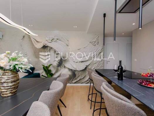 Duilovo, luxury three bedroom apartment of 160.00 m2 located on the first floor of a residential building with an elevator south-north orientation. It consists of an entrance hall, kitchen with dinin...