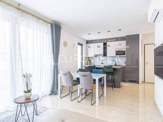 Znjan, predivan luksuzan stan povrsine 60 m2, smjesten u novoj zgradi na odlicnoj lokaciji. Zgrada je razvedena u cetiri etaze, a stan je smjesten na visokom prizemlju. Sastoji se od dnevnog boravka,...
