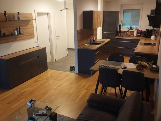 Zur Abgabe steht eine wunderschöne Wohnung 55,83m2 mit 90m2 großem Garten. Die Wohnung ist voll möbliert und umfasst einen direkten Eingang in die Wohnung, eine hochwertige Küche mit Siemens Geräten, Badezimmer mit verglaster Duschwand und Glastüre, WC ist getrennt vom Badezimmer, Waschmaschine, Chillerlounge im Garten, Griller, Rasenmäher, Oled von LG evo und einem TV Anschluss im Schlafzimmer mit Fernseher, die Wohnung verfügt auch über einen eigenen Vorplatz mit Abstellraum um Fahrräder und ...