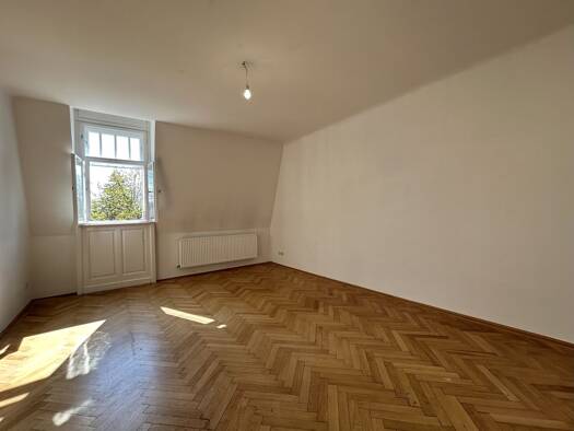 Schöne Altbauwohnung im letzten Stock einer Jugendstilvilla, mit Gartenmitbenützung. Diese in einem prachtvollen Haus im 3.Stock gelegene Wohnung (ohne Lift) hat folgende Raumaufteilung: Geräumiges Entree, 25m² großes Wohnzimmer, drei Schlafzimmer, zwei moderne Badezimmer, eine gut ausgestattete Wohnküche, separates WC, 2 Abstellräume einer davon mit Waschmaschinenanschluss. Den besonderen Charme macht der gepflegte Garten aus, welcher von den Mietern mitbenützt werden kann. HWB: 170,3 Die Wohn...