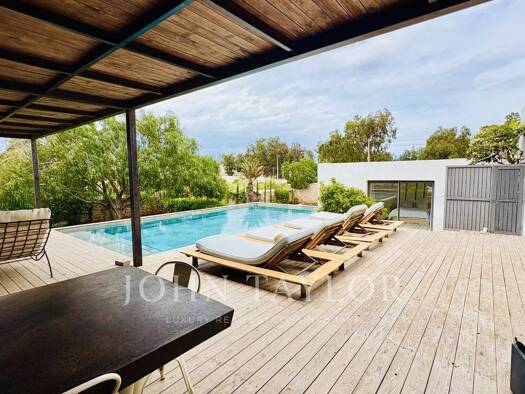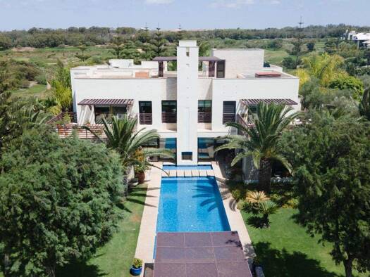 Cette luxueuse villa contemporaine est située au cour d'un vaste domaine à moins de 5 minutes des 3 plus beaux golfs de Marrakech et à moins de 15 minutes du centre-ville. La propriété s'étend sur 1....