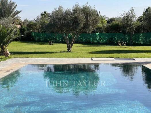 Villa raffinée en Palmeraie à 15 mn du centre de Marrakech Ce bien de grande qualité est situé dans un beau domaine sécurisé à 15 minutes du centre de la Ville Ocre. Nichée dans un superbe jardin pay...