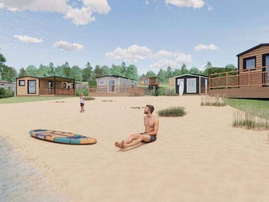 22 Wassergrundstücke direkt am Strand verfügbar. Gehen Sie von Ihrem Chalet direkt in den Sand und genießen Sie Ruhe, Weite und Wasserspaß. Dieser besondere Badesee ist seit 40 Jahren frei von Blaual...