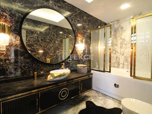 Villa mit Meerblick und Smart-Home-System in Alanya Bektas zu verkaufen Die Villa besticht durch luxuriöse Möbel, dekorative Wandverkleidungen, Keramikböden und Holzelemente an den Wänden. Hohe Decke...