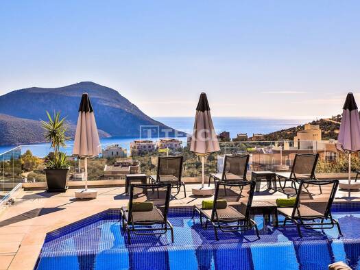 Kurzbeschreibung Die Villa mit Panoramameerblick in Kalkan, Antalya, verfügt über ein Pool, Kinoraum, Sauna, Türkisches Bad, private Garage und 3 Whirlpools, geeignet sowohl als Kapitalanlage als auc...
