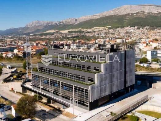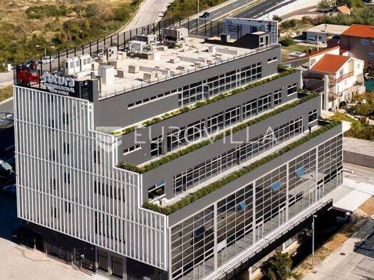 Gewerbefläche mit einer Gesamtfläche von 180 m², davon 160 m² Netto-Innenfläche und zusätzlich 20 m² Balkon, befindet sich im ersten Stock eines Geschäfts- und Wohngebäudes im Split-Vorort Mejasi. Da...