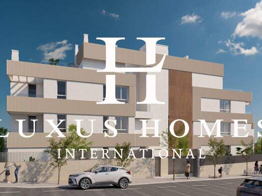 Das Projekt umfasst 65 Wohneinheiten in drei Gebäuden. Es bietet 26 Erdgeschosswohnungen und 12 Penthäuser mit zwei oder drei Schlafzimmern, großen Terrassen und einem spektakulären Blick auf das Mit...