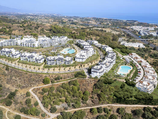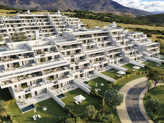 Kurzbeschreibung Wohnungen mit Meer und Bergblick und großen Terrassen sind an der Neuen Goldenen Meile in Estepona. Die gesicherte Anlage verfügt über einen großen Pool, Gärten, und einen ausgestatt...