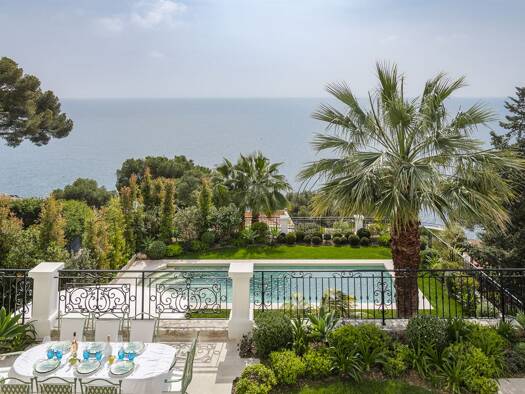 Cap-d'Ail - Roccamare | Panoramic Sea-View Villa Located in one of the most prestigious areas of Cap-d'Ail, in the heart of the highly sought-after Roccamare district, this elegant neo-Provencal vill...
