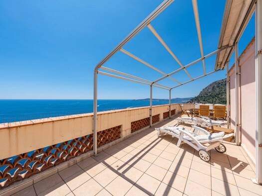 On the top floor of an intimate residence with only four apartments, this rare property for sale offers a truly spectacular panoramic sea view over Marquet Beach and the Monaco coastline. Fully renov...
