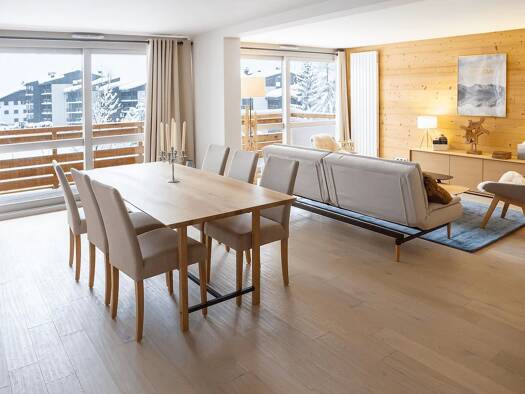 Occupying the entire first floor of a traditional chalet comprising only two units, this apartment of 142.42 m2 enjoys a prime location, offering peace and privacy just a short walk from the village ...