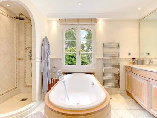 Unique property enjoying a magnificent panoramic view and located in the heart of the old village of Biot, comprising two villas in perfect condition set in the courtyard of a lush garden of 5,500 m2...