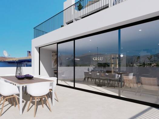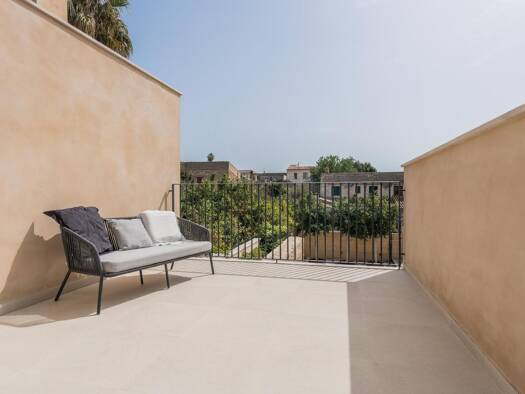 Entdecken Sie ein exklusives, neu erbautes Haus zum Verkauf in dem ruhigen Dorf von Campanet, Mallorca. Dieses beeindruckende 3-stöckige Reihenhaus kombiniert mediterranen Charme mit modernen Annehml...