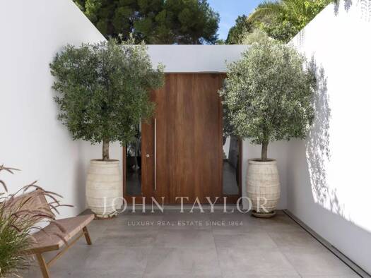This modern villa is located in the gated and secured community Vista Alegre near the charming village of Es Cubells. Brand new contemporary villa with infinity pool, 559 m2 of well appointed interio...
