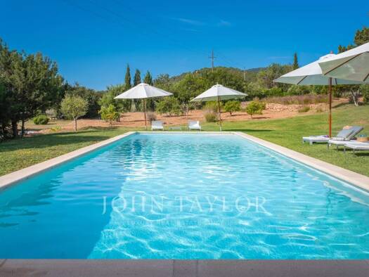 Diese außergewöhnliche Villa vereint mediterranen Luxus mit einem harmonischen Zusammenspiel von Innen- und Außenleben. Der großzügige, rechteckige Pool mit ca. 65 m² fügt sich elegant in die natürli...