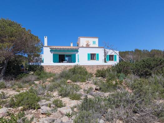 Diese außergewöhnliche Villa zum Verkauf in Es Cubells bietet einen freien Panoramablick auf das Meer, absolute Privatsphäre und direkten Zugang zu einem abgelegenen Strand - komplett mit Bootshaus u...