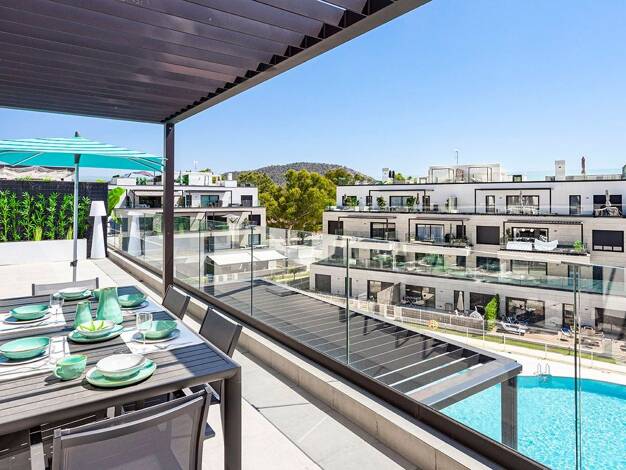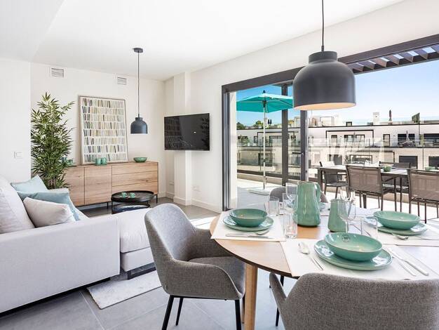 Diese moderne Neubau-Penthouse liegt in erhöhter, zentraler Lage von Santa Ponsa und ist nur wenige Gehminuten vom Strand entfernt. Die Architektur überzeugt durch einen zeitgemäßen Baustil und licht...