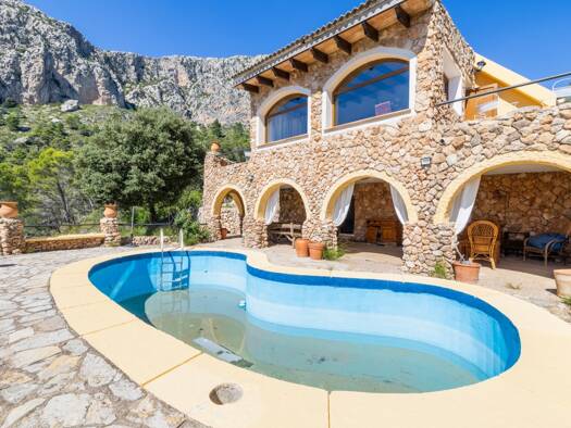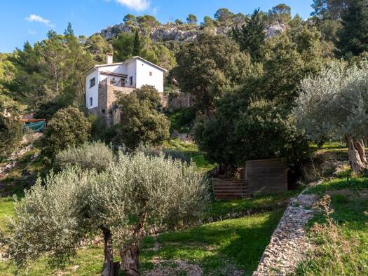 Am Tramuntana-Gebirge und absoluter Ruhiglage befindet sich auf einem ca. 624 m² großen Grundstück diese wunderschöne mallorquinische Finca aus dem Jahr 2007. Die Wohnfläche von ca. 225 m² verteilt s...