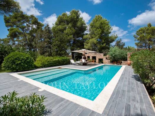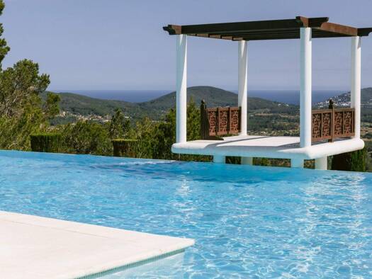 Ibicencan villa surrounded by pine forests in the north of the island, with breathtaking views across the Med, and boasting a gorgeous infinity pool, direct access to the beach and a multitude of cou...