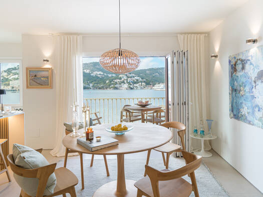 Lassen Sie sich von dieser neu renovierten 2-Schlafzimmer-Wohnung (2022) im Herzen von Port d'Andratx, Mallorca, verführen. Das schlichte Design bietet einen atemberaubenden Blick auf das Meer von de...