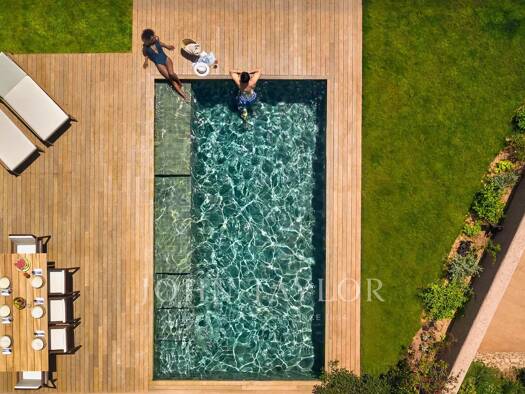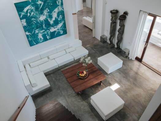 Diese exquisite, minimalistische Designer-Villa befindet sich auf einem weitläufigen Grundstück, das absolute Privatsphäre garantiert und einen atemberaubenden Blick auf das glitzernde Meer sowie spe...