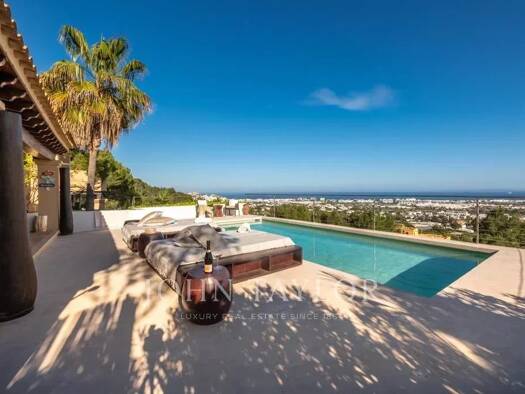 Diese prächtige Villa liegt nur 4 km von der pulsierenden Stadt Ibiza entfernt und bietet Ihnen einen unvergleichlichen Panoramablick auf die Salinen von Ibiza, Cap Falco, Playa den Bossa und die Ins...