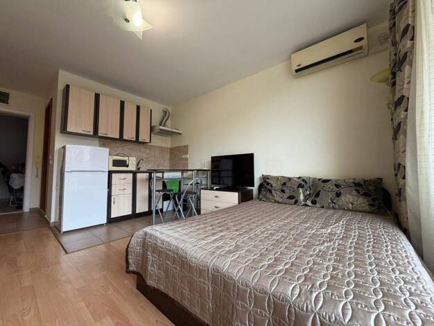 Charmantes, möbliertes Studio-Apartment im beliebten Iris-Komplex, nur 200 Meter vom Strand in Nessebar entfernt. Die Wohnung befindet sich im 4. Stock eines gepflegten Gebäudes mit Aufzug und bietet...