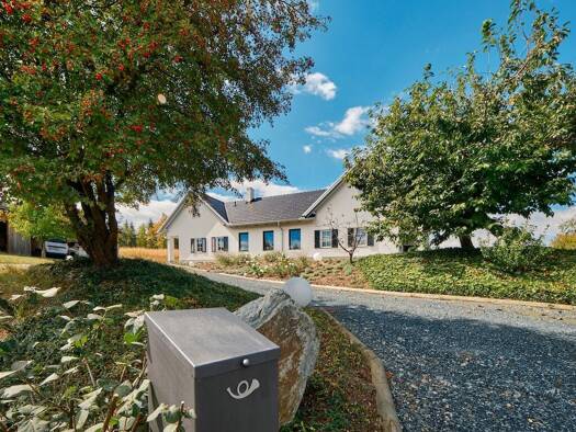 Wohnen im Grünen - Barrierefreies Niedrigenergiehaus auf über 2 Hektar arrondiertem Grund mit Badeteich und Scheune Auf großem, arrondiertem Grundstück erwartet Sie dieses 2010 erbaute barrierefreie ...
