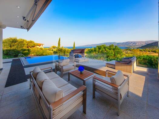 In Kehries Corinthia, mit Panoramablick auf das Meer und die Berge und nur 1.200 m vom Sandstrand entfernt, stehen zwei freistehende, Einfamilienhäuser mit einer Gesamtfläche von 195 m² auf einem Gru...