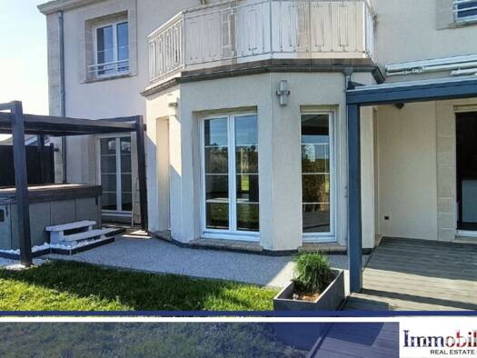 CIMM IMMOBILIER FORBACH bietet diese komplett renovierte Doppelhaushälfte mit einer Wohnfläche von 172,99 m² auf einem 620 m² großen Grundstück in Wousviller an. Das Haus besteht aus einer schönen, h...