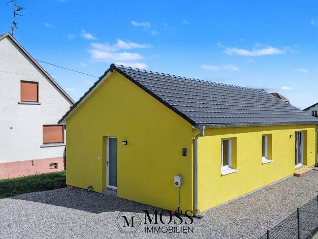 Nur fünf Minuten nach Deutschland zum Grenzübergang Neuenburg liegt das Objekt in Rumersheim le Haut - Frankreich. Dieser moderne Neubau-Bungalow vereint auf eindrucksvolle Weise hochwertige Ausstatt...
