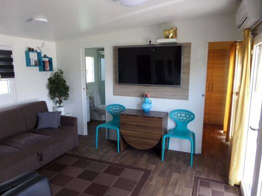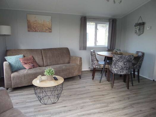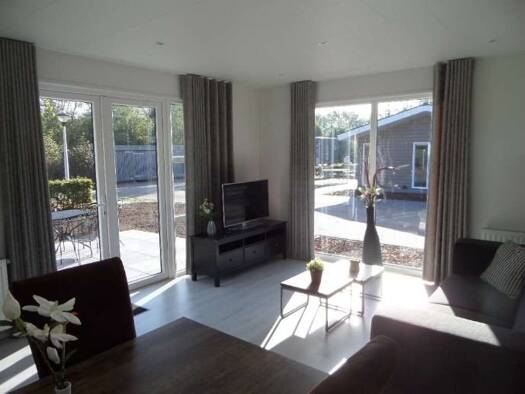 Schönes Luxe Chalet mit 6 Schlafplätzen. Wohnzimmer Gemütliches Wohnzimmer mit französischen Türen, die Zugang zur Terrasse bieten. Küche Geräumige, praktische Küche mit Geschirrspüler. Schlafzimmer ...