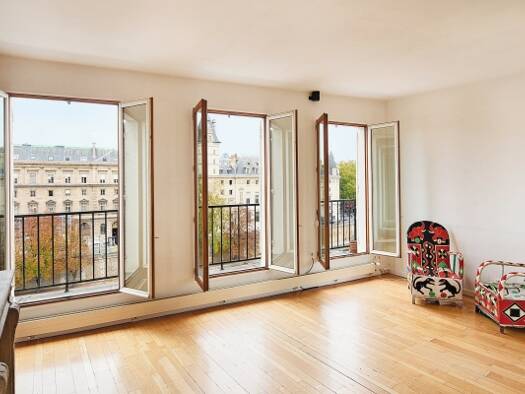 Quai des Grands-Augustins, in der Nähe von Pont-Neuf, im 5. Stock eines alten Gebäudes mit Aufzug, Wohnung von 54 m² >1m80 (Grundfläche 69 m²) wie ein Künstleratelier, mit Blick auf einen Balkon, der...