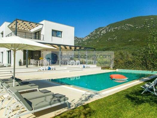 Eine Traumhafte Einfamilienhausvilla, mit imposanter Architektur, Größe und Ausstattung ! Sie verbindet einen Residenzähnlichen Styl zusammen mit der traditionellen Korfiotischen Bauweise. Naturstein...