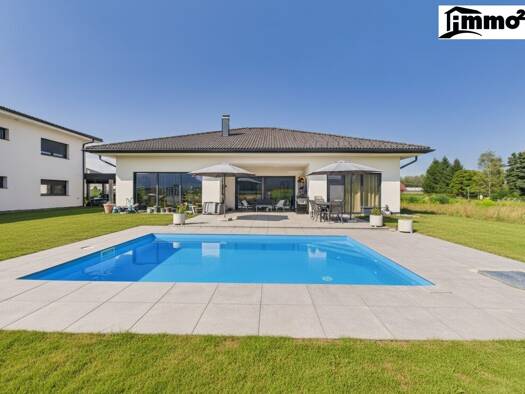 IHR FAMILIENTRAUM IN SONNIGER RUHELAGE Modernes Architektenhaus mit Pool, Weitblick und reduziertem Preis Dieses außergewöhnliche Architektenhaus aus dem Jahr 2022 vereint modernes Wohnen, hochwertig...