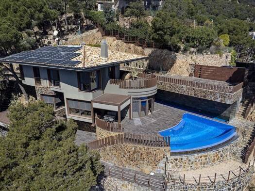 Villa with panoramic sea views in Sant Feliu de Guixols, Costa Brava, Spain. Stunning villa with amazing panoramic sea views, located on a rocky slope in the prestigious urbanization of Punta Brava, ...
