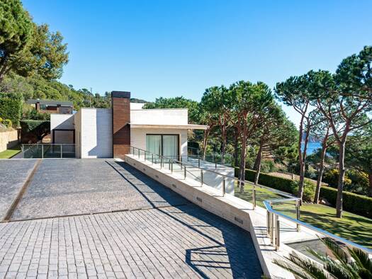 This modern, spacious villa with sea views is located on a hilltop in the prestigious Las Baterias district of Sant Feliu de Guixols, on the Costa Brava. The villa was built according to a stunning a...