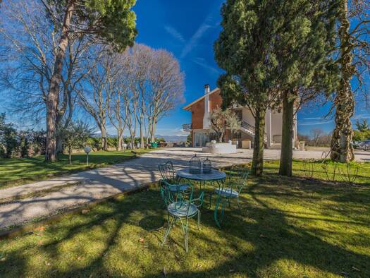 Gebäude von qm. 500 auf drei Ebenen. Die Wohnflache ist Ungefähr qm. 1.500. Der Grundstück ist qm. 133.000 in einem einzigen Parzelle. Etwa 1/3 ist Weinberg, der Rest ist Ackerland und ein Teil Wald....
